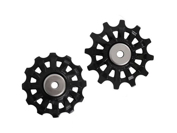 Campagnolo tension and guide pulley set for the Campagnolo Record rear derailleur 12-speed. The set consists of guide and tension pulley.