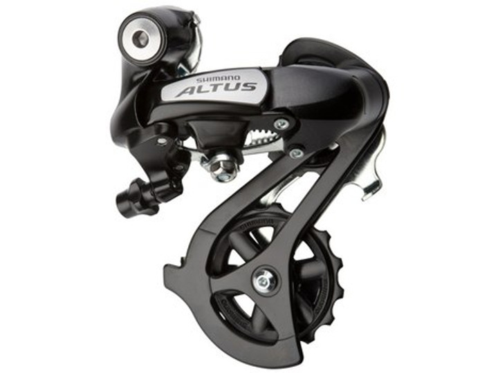 The Altus RD-M310 is a light action MTB rear derailleur for 7/8-speed shifting systems. It features a low profile concept with double servo-pantograph technology that improves adjustability and resists weather and contamination. The rear derailleur always keeps close to the cassette sprockets, allowing smooth and effortless gear changing. Wide link for durability and precise shifting.