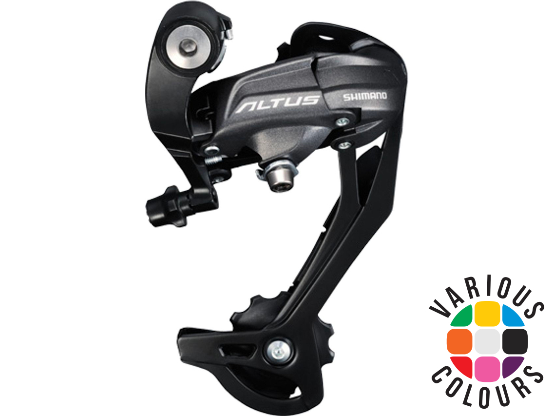 The 9-speed Shimano Altus M370 rear derailleur use its Mega 9 Drive Train design to deliver smooth, light action shifting performance.
