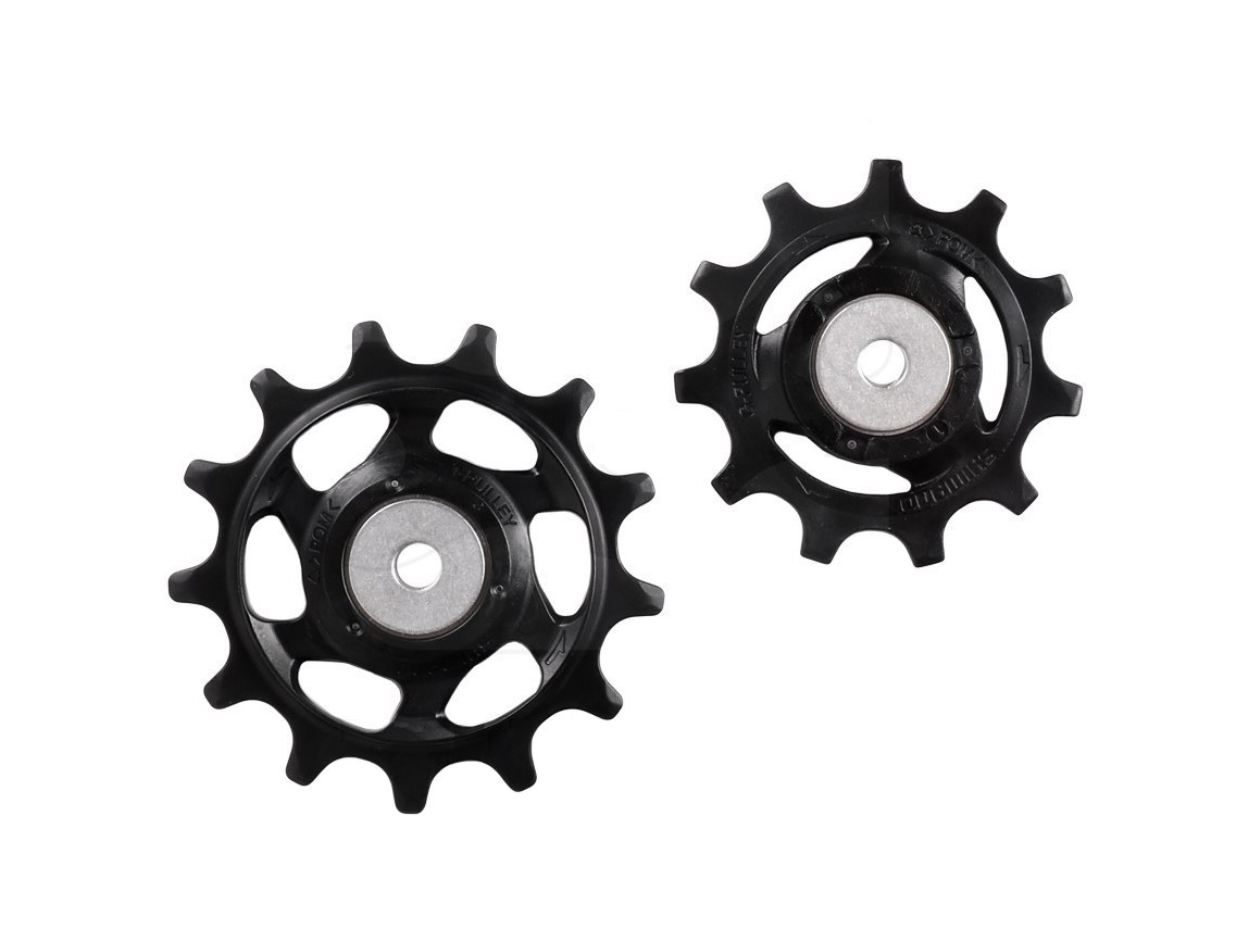 Tension and guide pulley set for the Shimano GRX Di2 RD-RX815 11-speed rear derailleur. Set consists of guide and tension pulley with 13 teeth for smooth running each.