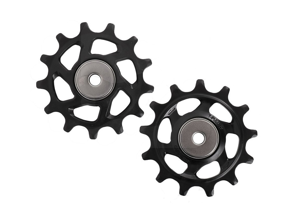 Set consists of guide and tension pulley with 13 teeth and sealed bearings for smooth running each. In addition the guide pulley features ceramic bearings for increased durability.