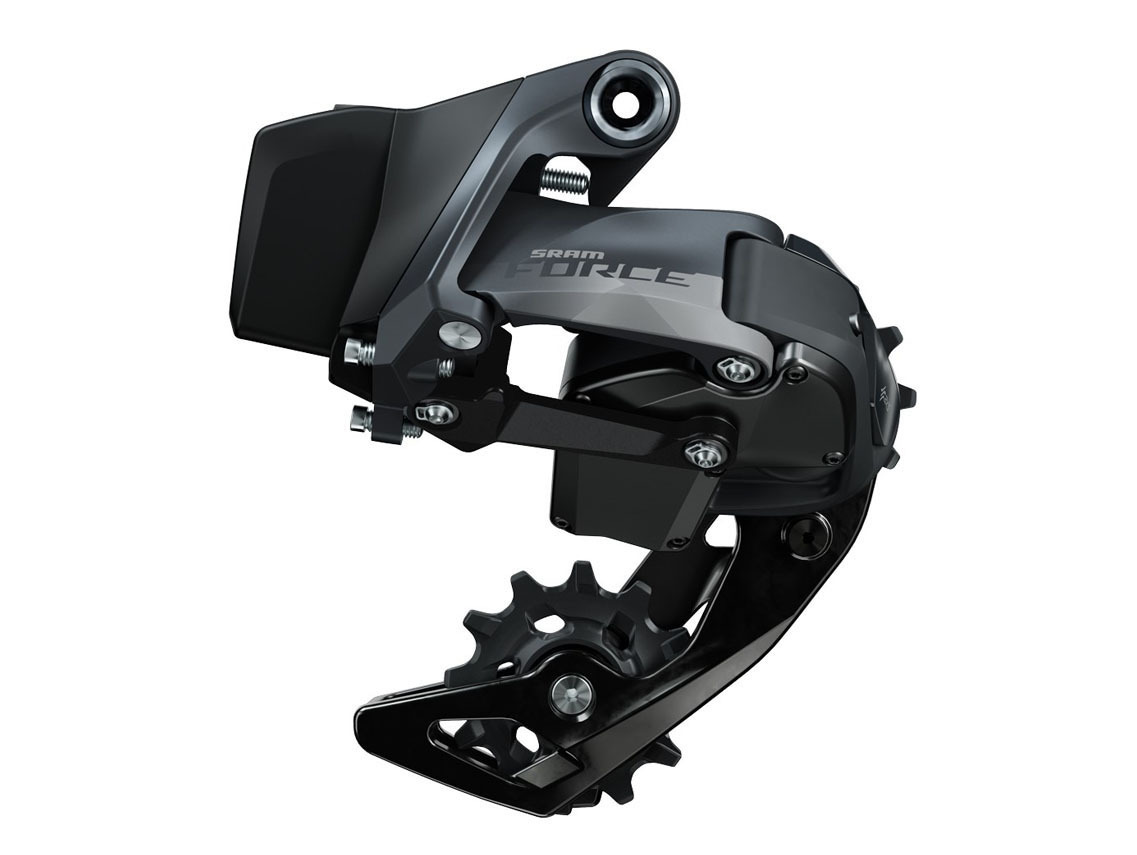 The SRAM Force eTap AXS rear derailleur allows you to shift 12-speed electronic gears with a wide bandwidth and optimal chain guidance.