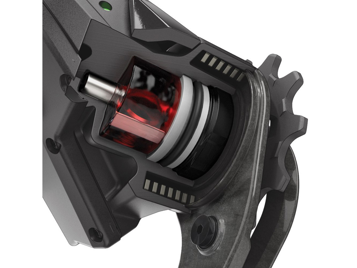 The SRAM RED eTap rear derailleur is AXS enabled for easy personalisation and designed for both 1x- and 2×12-speed systems. The advanced Orbit chain management keeps it silent and secure no matter the terrain. The derailleur also comes with faster -because they are larger X-Sync pulleys, ceramic bearings, improved motors and signals, improving speed in every way.