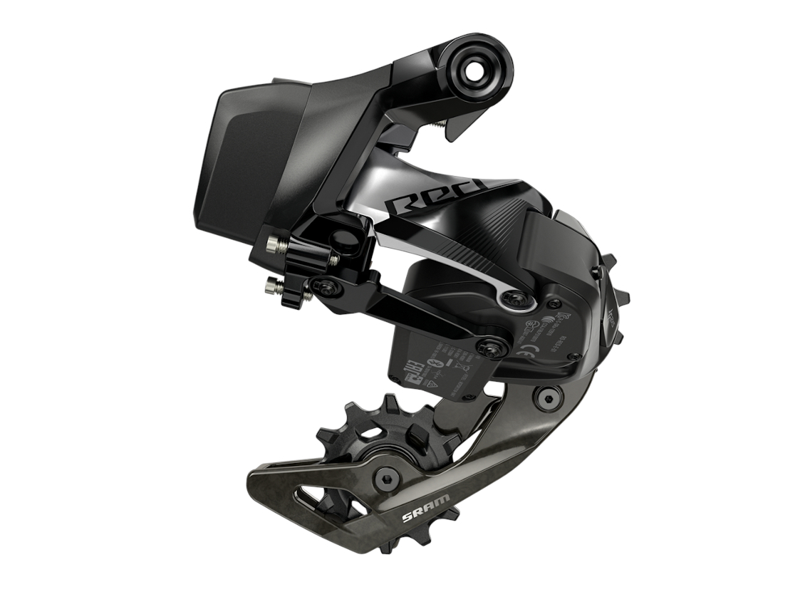The SRAM RED eTap AXS rear derailleur is AXS enabled for easy personalisation and designed for both 1x and 2x systems. Advanced chain management keeps it silent and secure no matter the terrain. The derailleur also comes with faster pulleys, bearings, motors and signals, improving speed in every way.