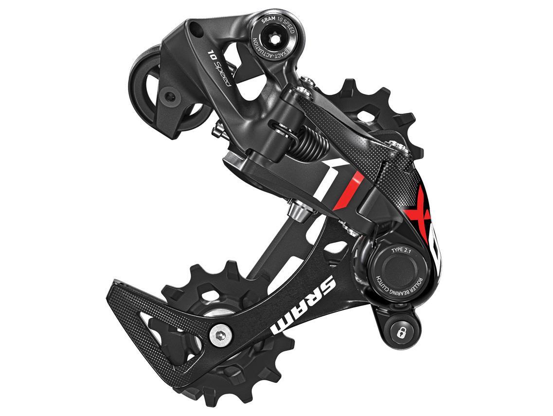 Having the right gear, into every sprint, out of every corner, and for those three race-winning pedal strokes after scrubbing the final gap, is what SRAM’s X01 DH Rear Derailleur is all about. It maintains a consistent chain gap across all 10 gears, enabling you to shift through the most demanding downhill courses with ease. An aluminum outer cage and stainless steel hardware provide durability while maintaining a low weight, while SRAM’s X-Horizon straight parallelogram technology eliminates all vertical movement, speeding up shifts, reducing shift force, and nearly eliminating ghost shifting. Chain slap and bounce are also reduced, thanks to the roller bearing clutch.
