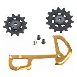 SRAM now offer a new Pulley and Cage Assembly to rebuild your SRAM rear derailleur. This new system allows you to replace and repair bent derailleurs and get your old damaged derailleur back into operation. These Pulleys must be installed in correct positions: lower pulley is larger than the upper pulley